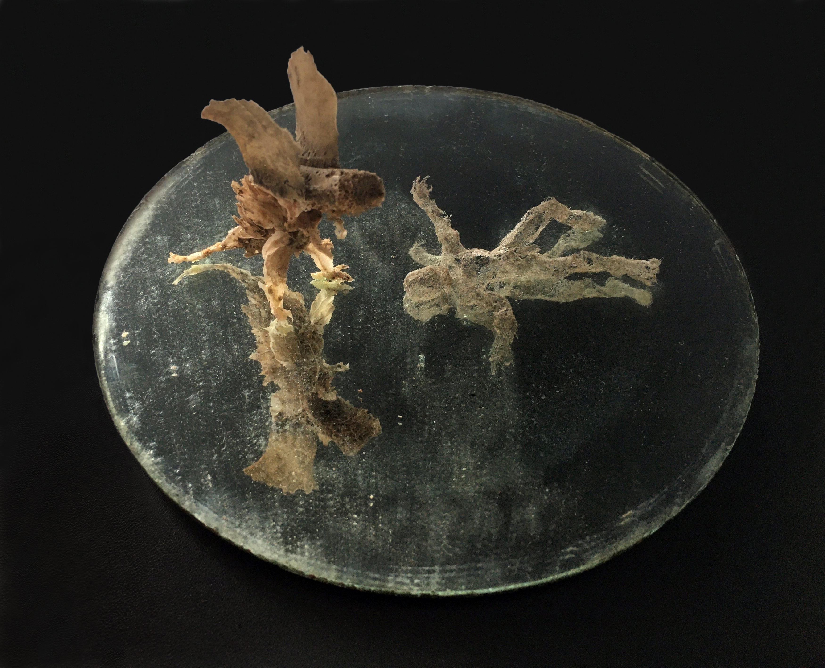 OUT OF THE FAUNA OF MIRRORS, 2018 | household dust, bone, mirror | 135 diameter x 70 mm |