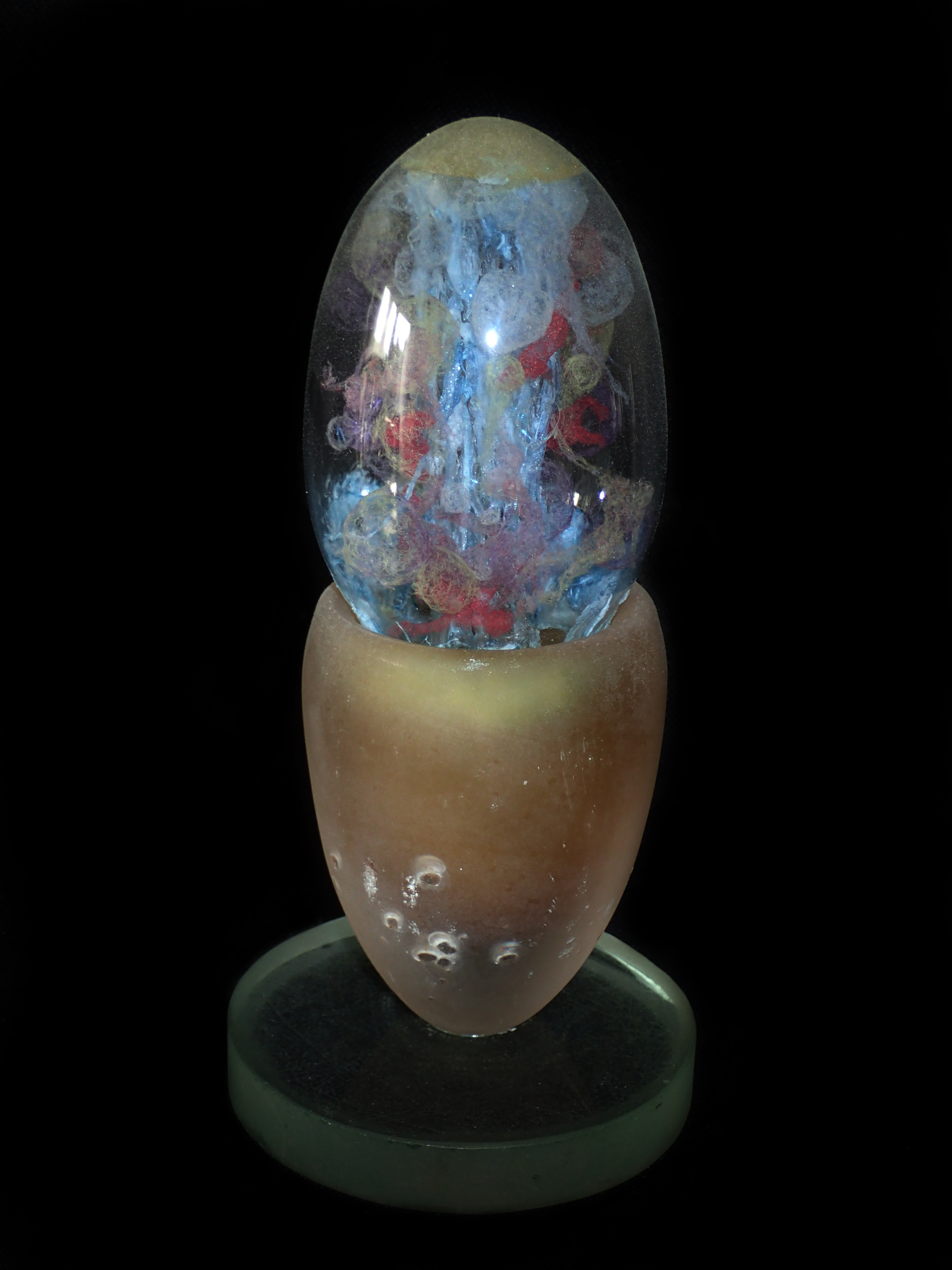THE EBB AND FLOW EGG, 2016 | household dust, pigment, lint, vinyl, PVA, superglue, glass | Height 160 mm |