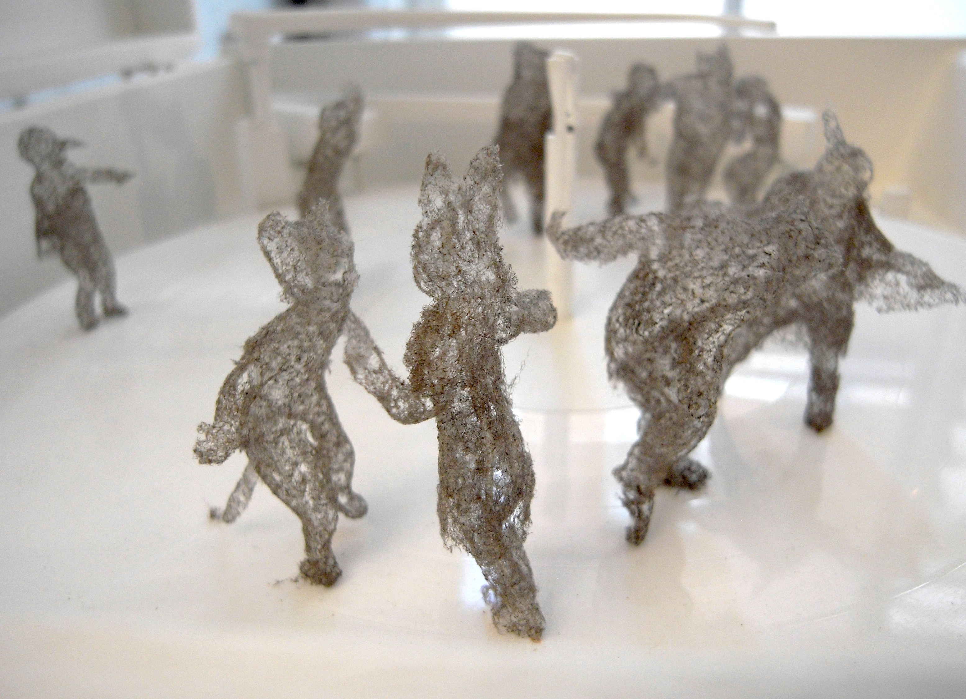TURN was created from the dust of Alice Herrick’s living space. Little shapeshifting figures, that were once an amorphous coating on a shelf, dance and turn like shadows upon a silent whitewashed turntable. TURN was the centrepiece of the inaugural solo exhibition marking the turning of this living space into Herrick Gallery.